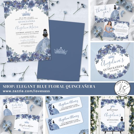 Elegant Blue Floral Quinceañera InvitationsDesigned by Jo P.
