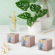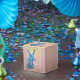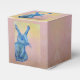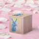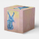 painting of a cute blue rabbit on a yellow pink background makes this lovely gift box.