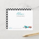Fun race car theme boy baby shower advice cards featuring watercolor illustration of a blue vintage car with red flame art. Ask the guests to fill out this card during the shower. It will be a great keepsake!