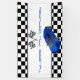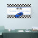 This custom banner features a blue sports car with black and white chequered racing flags and background. Sample text is easy to change to your own. Additional text can be added, and font styles, colours and more can be adjusted by using the design tool. Matching party items are available in my store. Be sure to follow me for new product updates. Thank you for your interest in SapphireDesigns!