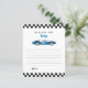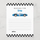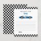 Blue vintage race car boy birthday party time capsule note card.