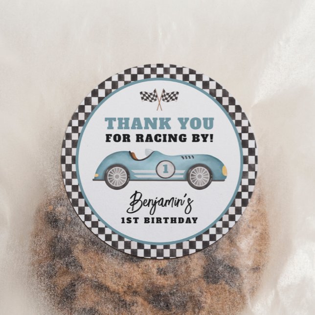 Blue Race Car Fast One Boy Birthday Party Classic Round Sticker