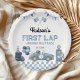Blue Race Car First Lap Around the Track Birthday Paper Plate