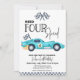 Blue Race Car, Need FOUR speed 4th Birthday Invitation