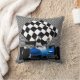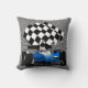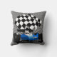 Vroom, Vroom! Jazz up your room! Blue Race Car with a winning chequered flag! - Pillows are available in three size options, with fabric for outdoor or indoors and zipperless, too. Find the right pillow for your home decor!