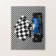 Blue Race Car with Chequered Flag Jigsaw Puzzle