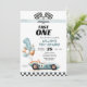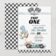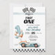 Rev up the engines for a special milestone with this "Fast One" racing car 1st birthday invitation! Featuring a sleek blue vintage race car and bold typography, this design is perfect for your little driver's big day. The modern layout and classic racing flags create a high-energy theme that guests will love. Easily customise all the details to get your pit crew ready for an unforgettable celebration.