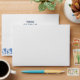 A custom A7 envelope with your return address on the back in art deco letters and a border of blue sailboats sailing across the bottom of the envelope, with a blue lining. Customise It to change sizes, fonts, colours, upload your photo or corporate logo and more, even save your design for later.