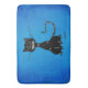 Black cat bath mat with a ragged evil black cat who has already lived eight of its nine lives over textured blue background. It's still mean, though. This evil black cat illustration will make a great gift for someone who loves cats and/or likes dark, grunge and gothic stuff. This is a mean cat. It has crafted that look in its eyes that says "Keep away" through hardship and pain and is still strong.