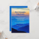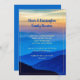 Family reunion invitation for a mountain gathering. Bold blue colours depict a rolling mountain range with sunset colours on the horizon. This is the background for text in two templates. Dark blue modern script at the top is where the name, or names, will be mentioned along with type of gathering. Casual, uppercase printed font in yellow is used for the remainder of the invitation. Easily include a website link, reply information and whatever is needed for your event which could also be a class, or friends, reunion. A gold thin line borders the 5x7 inch cards. Reverse is solid deep blue.
