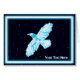 A simple, glowing, blue-and-white line image of a Raven (Corvus corax) on a starry background image. Add your own text.