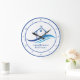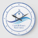 This classy modern real estate company office clock is custom made with your realty business under the the agent name in blue typography. The artistic blue wave design underneath a house with a weather vane on top combines contemporary with classic for a realtor logo that will appeal to many different home buying clients.