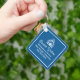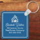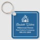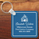This professional realtor keychain is custom made with your real estate company name under the modern cursive script and house image. This chic blue and white realty business promotional item feature a house logo image for home builder or realty agent company marketing.