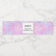 Event water bottle labels with an abstract background pattern. Pink purple and blue watercolors make up this artistic design which features vertical rectangle shapes on a soft mottled background. A square layered over top with a faux gold foil border, your personalised text inside.