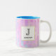 Blue Rectangle Shapes on Pink Background Monogram Two-Tone Coffee Mug