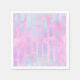 Paper napkins with an abstract background pattern. Pink purple and blue watercolors make up this artistic design which features vertical rectangle shapes on a soft mottled background.