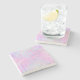 A stone coaster with an abstract background pattern. Pink purple and blue watercolors make up this artistic design which features vertical rectangle shapes on a soft mottled background.