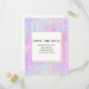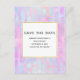 Save the date postcard with an abstract background pattern. Pink purple and blue watercolors make up this artistic design which features vertical rectangle shapes on a soft mottled background. A square layered over top with a faux gold foil border, your personalised text inside.