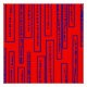 Blue rectangles on red poster