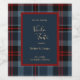 This is a customisable luxury wedding wine bottle label. It shows a harmonious blend of blue red black scottish pattern and it has fitting blue tones and white typography. The minimal rectangle blue overlay with a burgundy border is for your customisation like Intro, wine, date and monograms or names for your wedding. Hobinishop