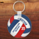 This boys' volleyball keychain with team name features a blue, red and white volleyball upon which you can customise the player's name and jersey number plus school team and mascot name - by katz_d_zynes