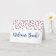 Welcome back card with Red and Blue confetti pattern. Perfect to welcome employees back to work.