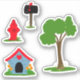 Red Blue Doghouse. Black Red Mailbox, Red Fire Hydrant, Green Tree stickers