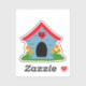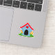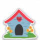 Blue with red trim doghouse with yellow flowers and green grass sticker