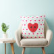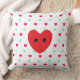 Cute light blue and magenta red heart pattern on white Throw Pillow. A big red happy heart is on the front side. The red heart image can be customised.