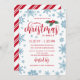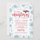 Blue Red Holly Snowflakes Christmas Dinner Invitation