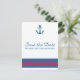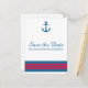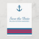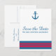 Elegant and classic Nautical Anchor Save the Date Postcard with a simple boat anchor and an array of stripes in dark navy blue and red. This nautical beach themed save the date can be easily customised with your wedding details. For more customisation options, click on the Customise It button.