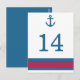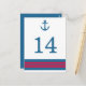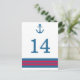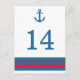 Elegant and classic Nautical Anchor Table Number Postcard with a simple boat anchor and an array of stripes in dark navy blue and red. This nautical beach themed wedding table card can be easily customised with your wedding details. For more customisation options, click on the Customise It button.
