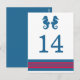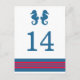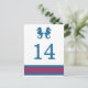 Elegant and classic Nautical Seahorse Wedding Table Number Postcard with a pair of simple seahorses and an array of stripes in dark navy blue and red. This nautical beach themed table card can be easily customised with your wedding details. For more customisation options, click on the Customise It button.