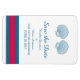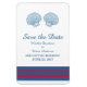 Elegant and classic Nautical Sea Shells Save the Date Flexi Magnet with a pair of simple seashells and an array of stripes in dark navy blue and red. This nautical beach themed save the date can be easily customised with your wedding details. For more customisation options, click on the Customise It button.