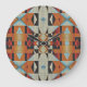 Blue Red Orange Taupe Brown Black Tribal Art Large Clock