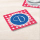 Blue & Red Polka Dot Monogram Square Paper Coaster