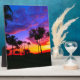 Blue Red Sunset Exotic Hawaiian Beach Palm Trees Plaque