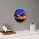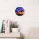 Blue Red Sunset Exotic Hawaiian Beach Palm Trees Round Clock