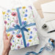 Blue Red Watercolor Wildflower Wrapping Paper