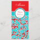 This modern and trendy turquoise blue, red, and white flowery damask menu card matches the wedding invitation shown below. It is designed on a rack card with a glossy front, and matte finish back. ****PLEASE make sure that all text is centred where you want it, as it will print as you see it on your monitor. If you need help customising this, or if you would like a menu card on invitation paper to match your invitations, or if you have any requests for additional items or changes, please email niteowlstudio@gmail.com with your request.