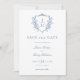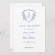 Blue Regency Floral Crest Monogram Wedding Save The Date