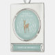 Blue reindeer botanical delicate elegant silver plated banner ornament