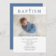 Personalised Blue Religious Cross Photo Boy Baptism Invitation.