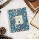 Retro floral notebook with flowers and greenery in blue, white, and green. Add your initial, name, and the purpose of the notebook in blue against a printed pale green label. A spiral notebook printed with a retro floral pattern with hand-drawn flowers in blue and white.