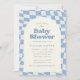 Blue Retro Groovy 70s Chequerboard Baby Shower Invitation