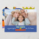 Blue Retro Holiday Photo Card | Horizontal