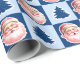 Blue Retro Santa Claus Christmas Tree Tartan Plaid Wrapping Paper