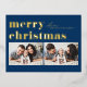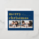 Blue Retro Typography Merry Christmas Two Photo Foil Holiday Postcard