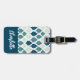 Blue Retro Vibe Leaf Pattern Monogram Luggage Tag