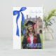 Celebrate your graduate with this elegant blue‑ribbon graduation party invitation, designed to highlight their achievement with a bold, polished look. The front features a customizable photo framed by a striking blue bow accent, adding a touch of sophistication and celebration to the layout. Clean, modern typography keeps the design fresh and easy to read, while fully editable text fields allow you to personalize the graduate’s name, degree, event details, and any special notes.